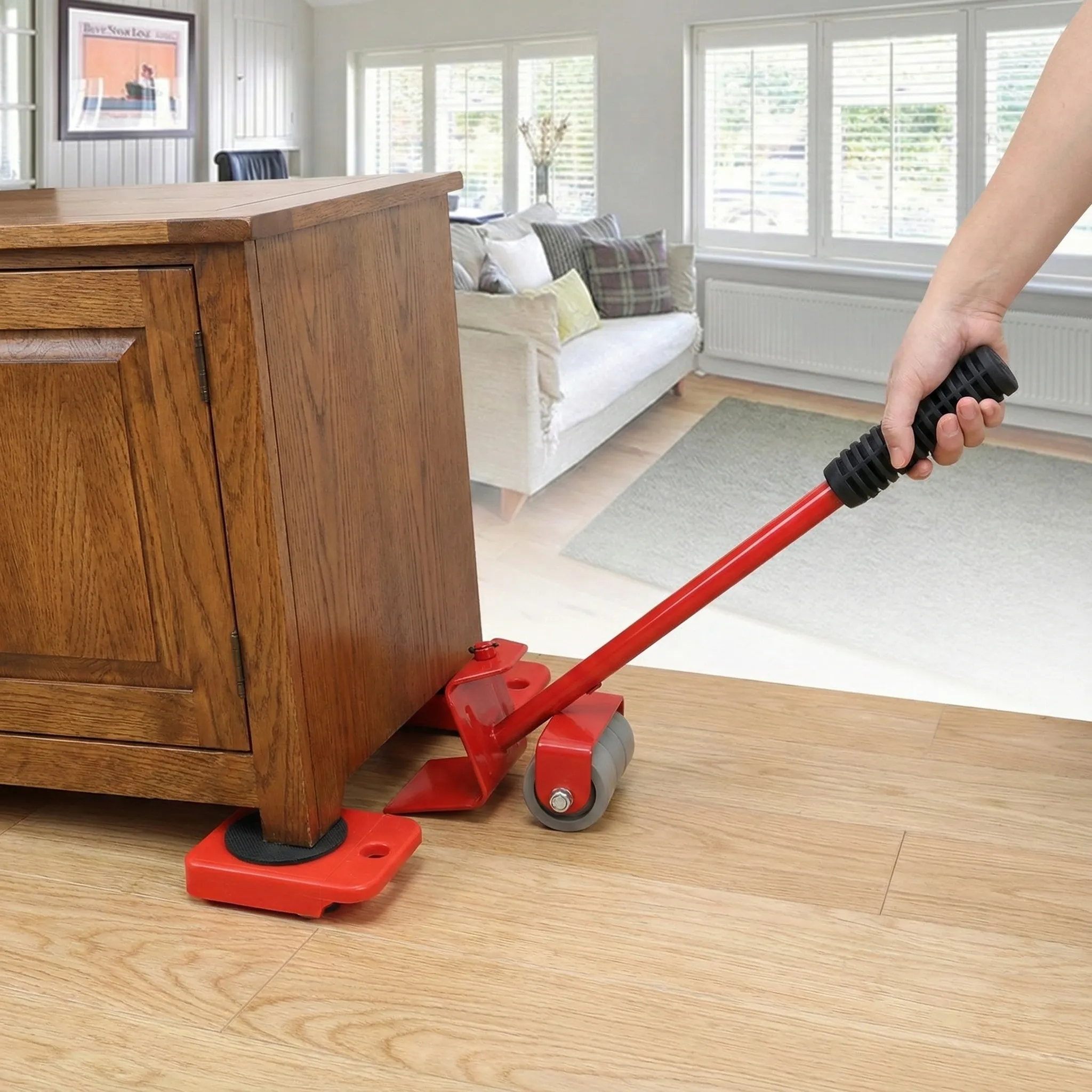Pârghie Ergonomică din Oțel (Putere Multiplicată): Sistemul de ridicare este fabricat din oțel rezistent și dispune de un mâner ergonomic. Acesta îți permite să ridici marginea mobilierului cu o forță minimă, oferindu-ți spațiul necesar pentru a introduce rolele de transport sub picioarele obiectului.