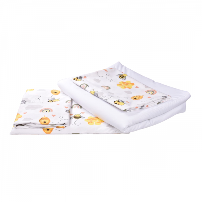 - Cearșaf: 140 cm x 70 cm (ideal pentru pătuțuri stivuibile)