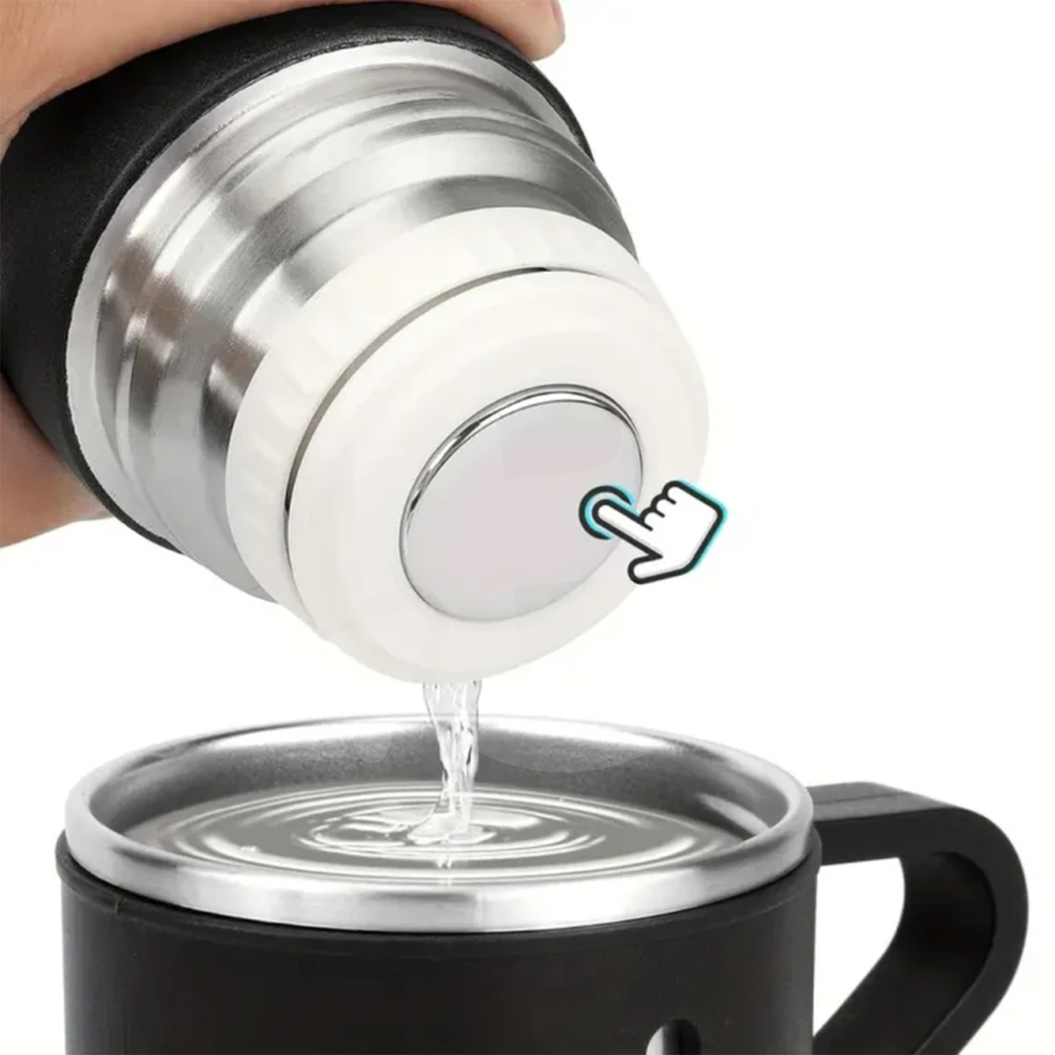 Un element distinctiv al setului este includerea a două căni suplimentare, fiecare cu capacitate de aproximativ 150 ml. Acestea sunt realizate din același material rezistent și pot fi utilizate direct pentru servirea băuturilor din termos. Setul devine astfel o soluție completă, potrivită pentru împărțirea băuturii în deplasări, excursii, pauze de lucru sau activități în aer liber. Pentru clienții care achiziționează produse en-gros, acest aspect adaugă valoare percepută și diferențiere față de termosurile standard.