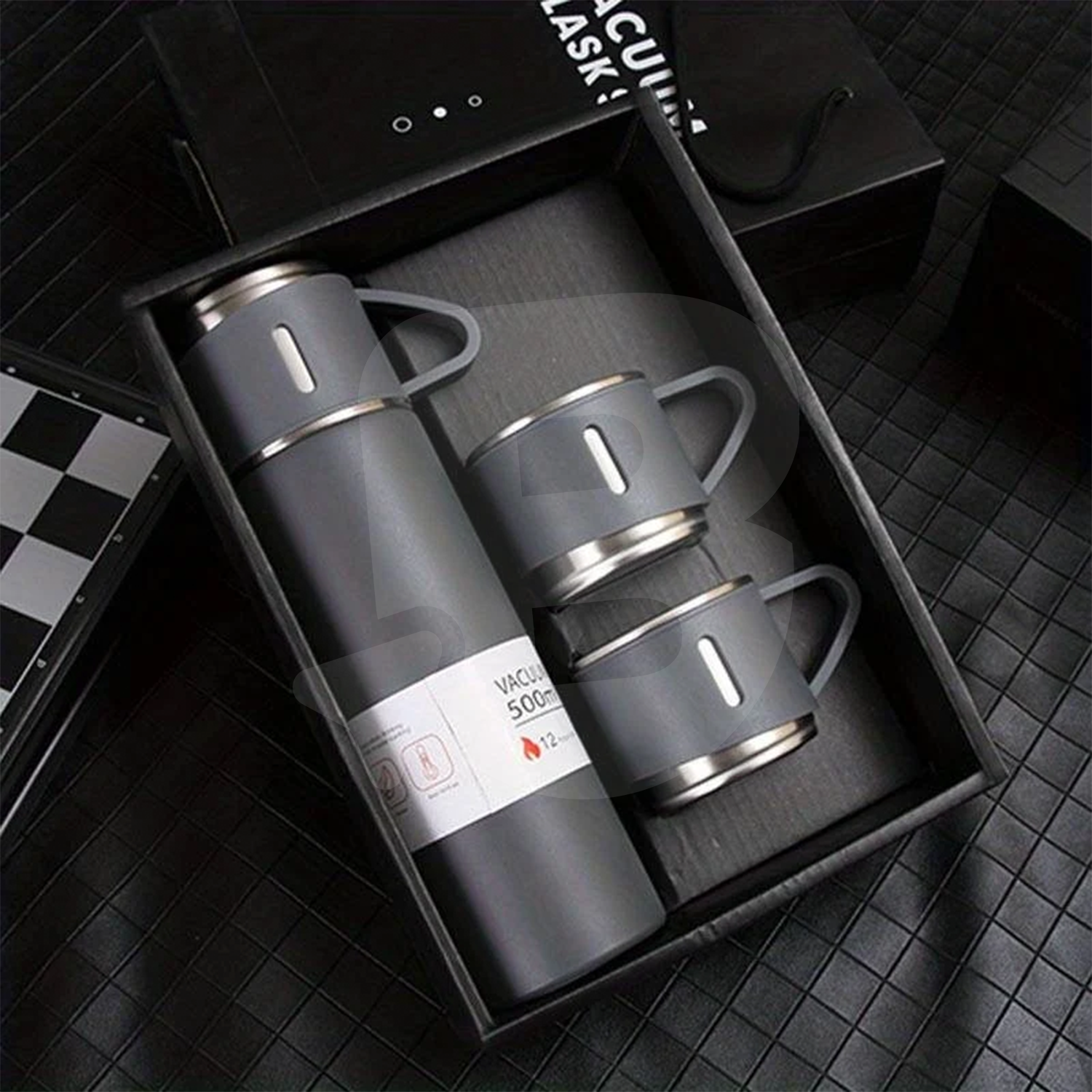 Setul termos cu 2 căni extra, cu perete dublu vacuum izolator și capacitate de 500 ml, este conceput pentru utilizare zilnică și comercializare en-gros, fiind o soluție practică pentru distribuție către magazine, puncte de vânzare outdoor, retail specializat sau cadouri corporate. Acest set răspunde cerințelor pieței actuale prin funcționalitate, rezistență și prezentare compactă, fiind potrivit pentru clienți care caută produse utile, reutilizabile și ușor de transportat.