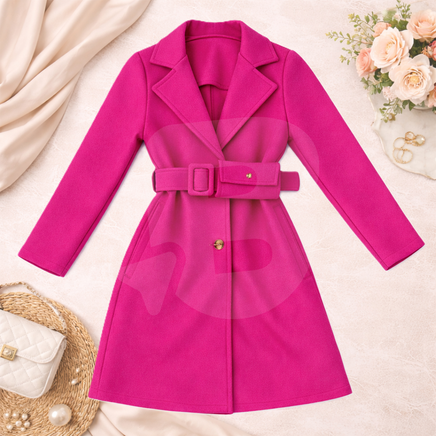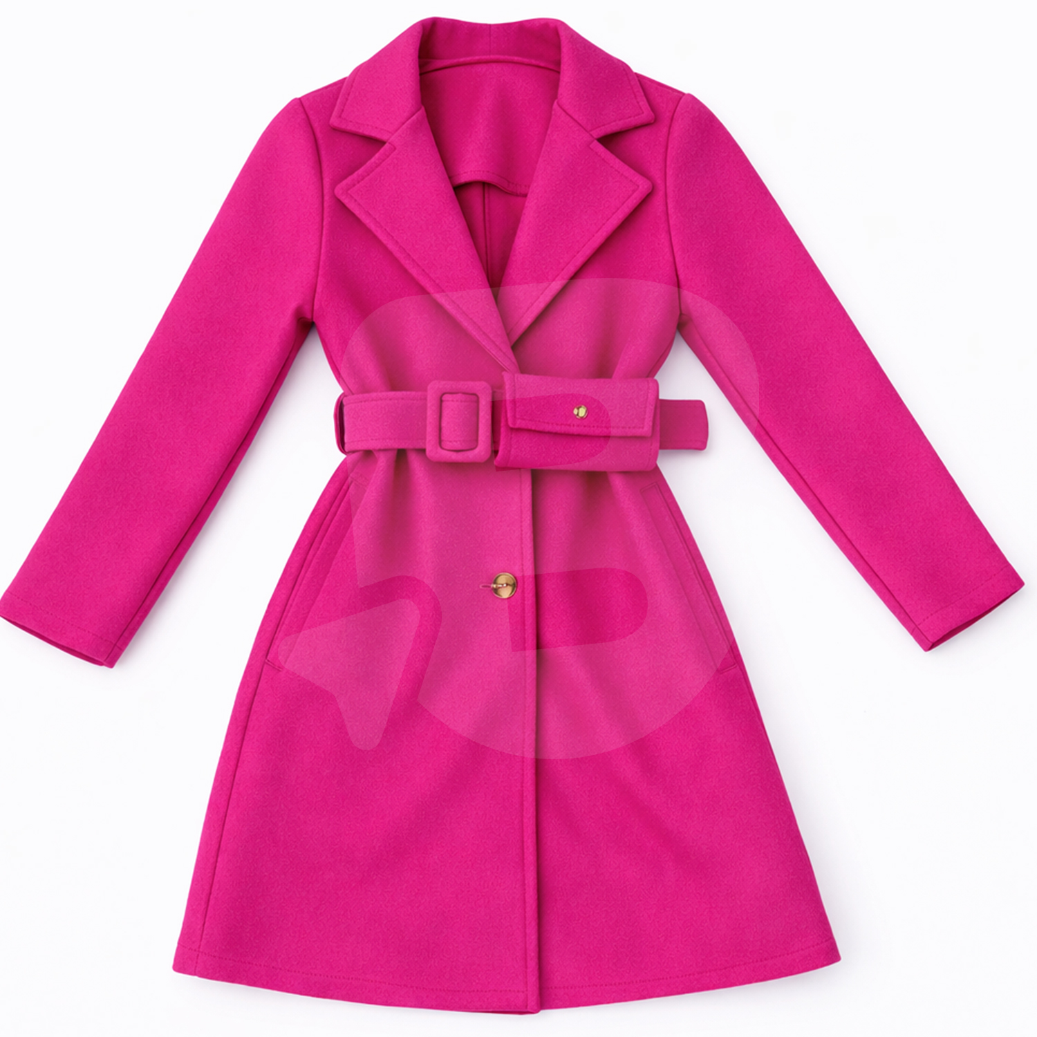 Materialul are o textură compactă și plăcută la atingere, asigurând confort termic și rezistență la purtare repetată. Paltonul dispune de mâneci lungi și buzunare laterale funcționale, fiind practic pentru utilizare zilnică. Culoarea fucsia este vibrantă și modernă, foarte apreciată în colecțiile pentru fete, ideală pentru vitrine și prezentări de sezon.