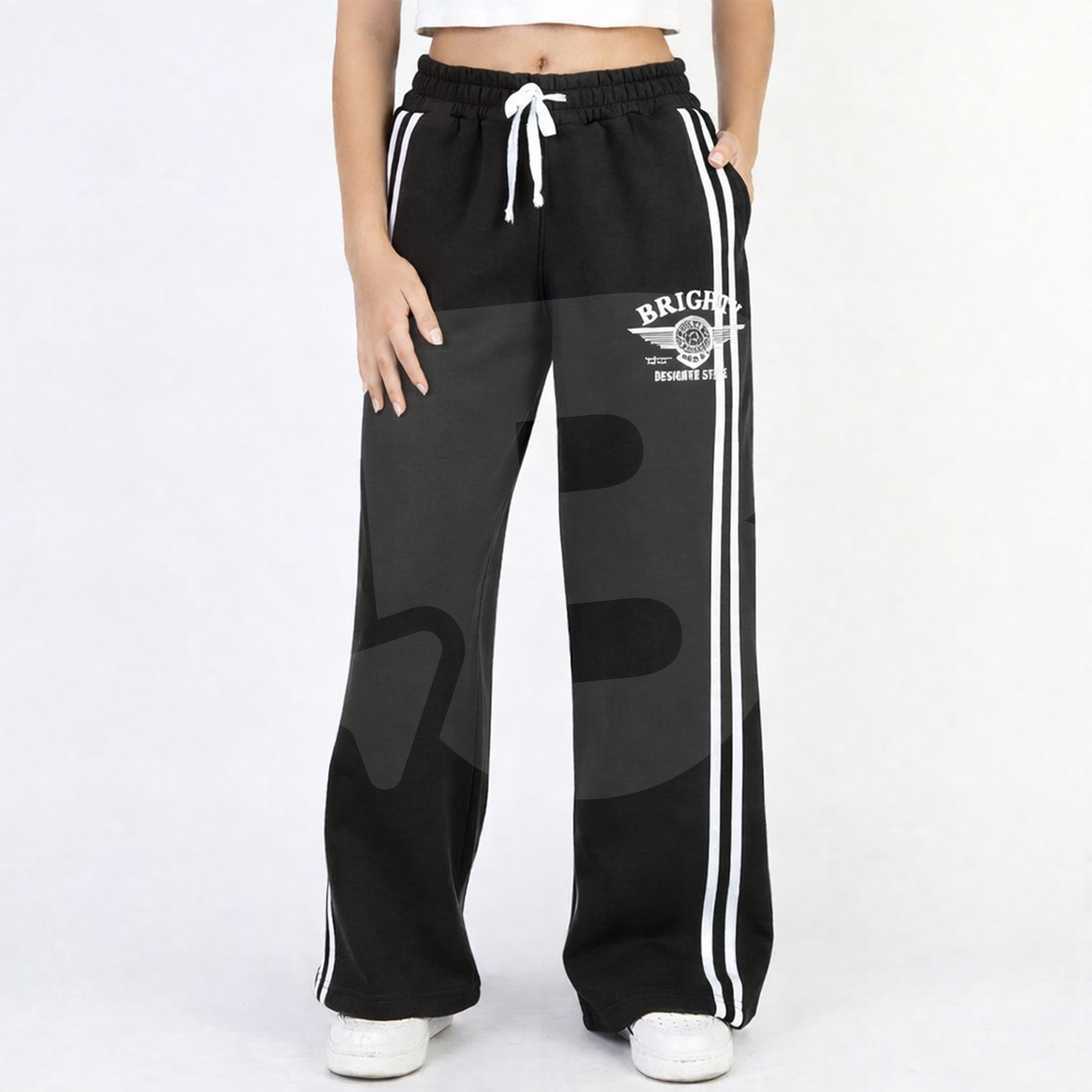 Designul sport-casual este pus în valoare de două dungi albe verticale pe lateral, care conferă un aspect dinamic și actual. Imprimeul cu text aplicat pe partea frontală adaugă personalitate și stil, fiind potrivit pentru ținute de zi cu zi, școală sau activități recreative. Culoarea neagră este practică, ușor de asortat și foarte apreciată în colecțiile pentru fete.