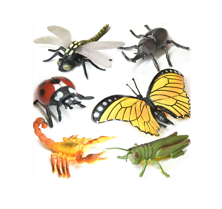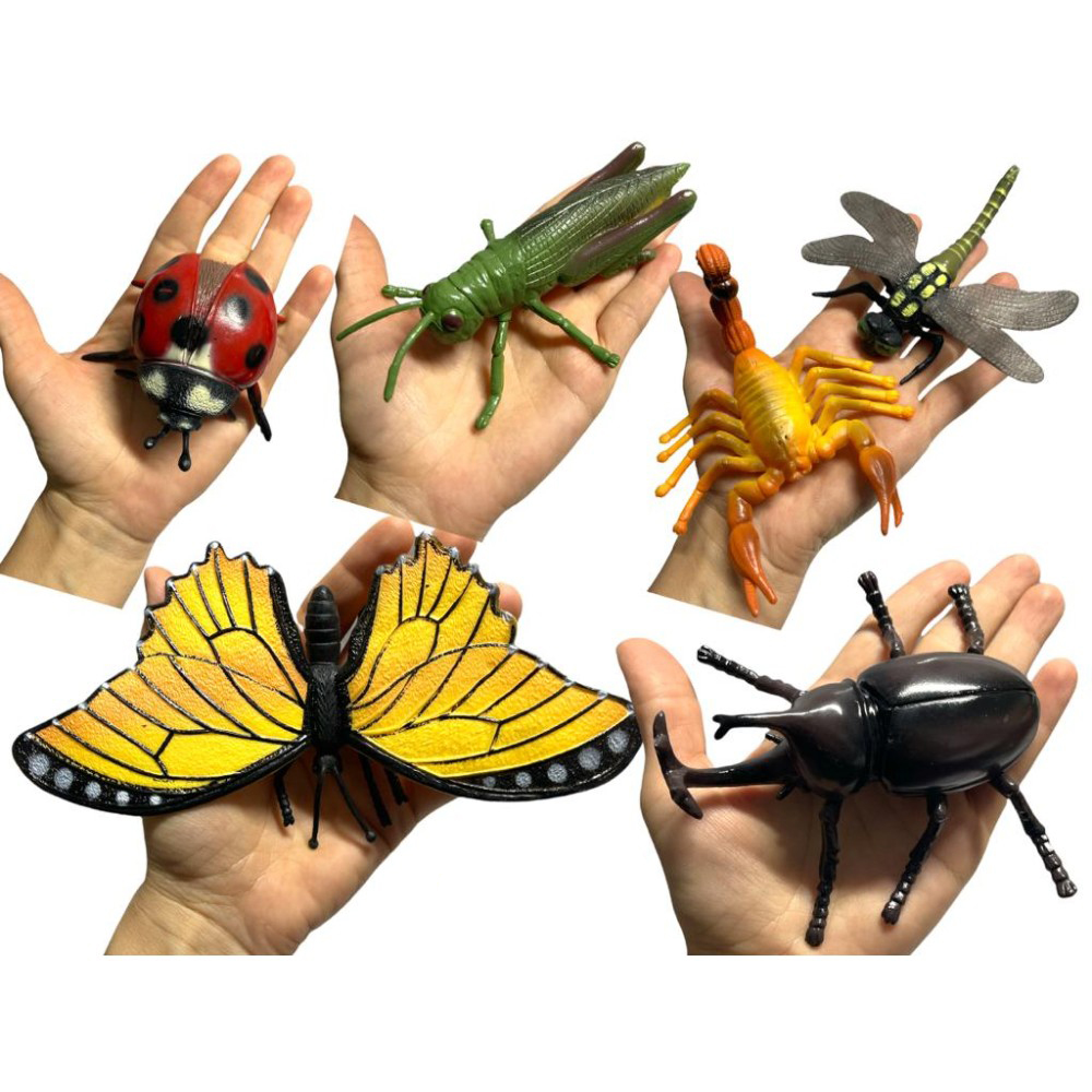 Setul include șase specii diferite (precum scorpion, gândac, lăcustă sau furnică), fiecare având dimensiuni generoase cuprinse între 10 cm și 15 cm. Analizând materialele, figurinele sunt fabricate dintr-un amestec de plastic și cauciuc flexibil, ceea ce le face rezistente la șocuri și foarte plăcute la atingere. Texturile sunt redate cu mare precizie, imitând aspectul real al exoscheletului insectelor. Acest set este ideal pentru activități educative, proiecte școlare despre ecosisteme, decoruri tematice pentru petreceri sau pur și simplu pentru a adăuga un plus de realism „micro-aventurelor” de acasă sau din grădină.