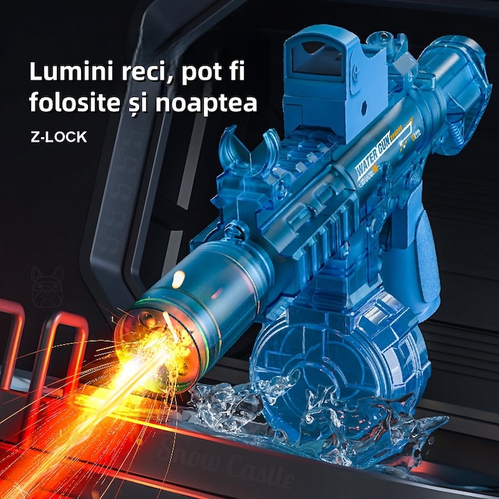 Elementul care scoate acest pistol în evidență este sistemul de iluminare LED integrat. Acesta se activează automat în momentul pulverizării sau la pornire, adăugând accente vizuale spectaculoase, în special seara sau în condiții de lumină slabă. Lumina nu doar că sporește atractivitatea jucăriei, dar îmbunătățește și recunoasterea taberelor în timpul jocurilor nocturne, creând o atmosferă captivantă și modernă. Designul ergonomic, cu linii fluide și un rezervor generos, este completat de o carcasă rezistentă care protejează componentele interne de stropii de apă.