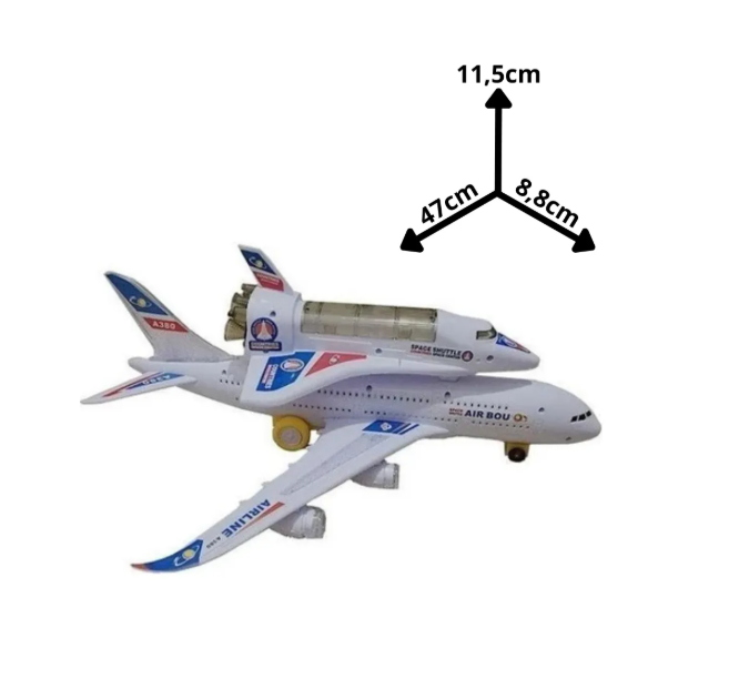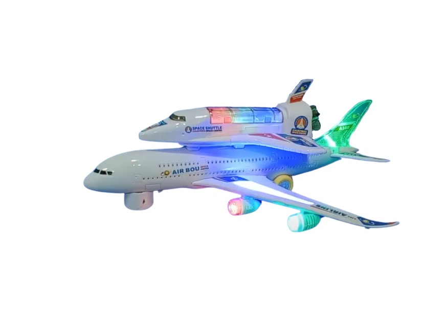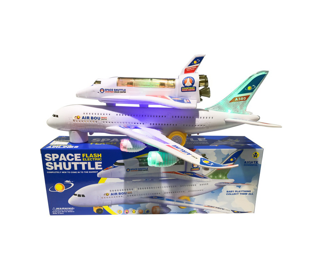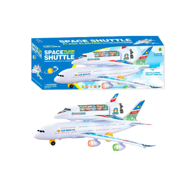 Pregătiți-vă pentru o misiune dublă, între cer și stele, cu Avionul Electric A380 dotat cu Navetă Spațială. Această jucărie inovatoare reunește două dintre cele mai fascinante vehicule de transport, oferind copiilor un scenariu de joacă extins. Avionul A380, simbolul gigantului aerian, poartă pe fuzelajul său o navetă spațială, creând un ansamblu impunător care va capta imediat atenția oricărui mic pasionat de explorare.