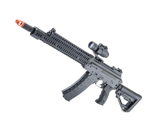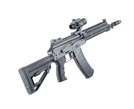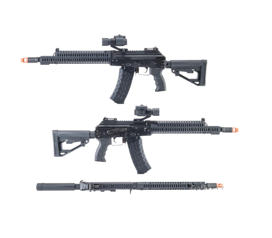 - Design AK12 Tactical: Replică detaliată cu șine tip Picatinny pentru montarea accesoriilor incluse.