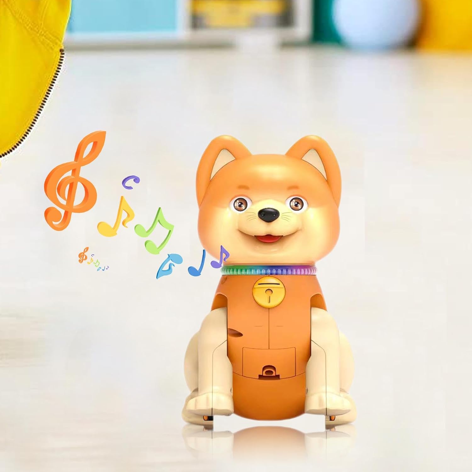 Cățelușul are o înălțime de 20 cm, fiind ușor de transportat și manevrat de către cei mici. Analizând funcțiile sale complexe, jucăria este dotată cu un sistem de mișcare omnidirecțional care îi permite să evite obstacolele în timp ce dansează pe melodii vesele. În timpul funcționării, corpul și ochii cățelușului sunt iluminați de LED-uri multicolore, creând un spectacol vizual captivant mai ales în condiții de lumină scăzută. Fabricat din plastic ABS durabil și non-toxic, acest robot este construit să reziste la utilizare zilnică, oferind în același timp un mediu de joacă sigur. Este instrumentul perfect pentru dezvoltarea limbajului, a ritmului și a funcțiilor motorii prin imitare și interacțiune directă.