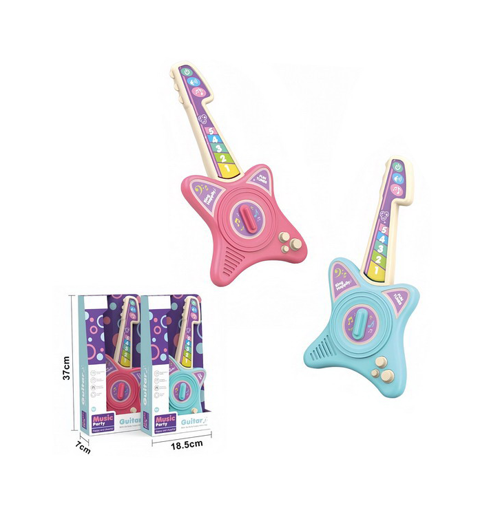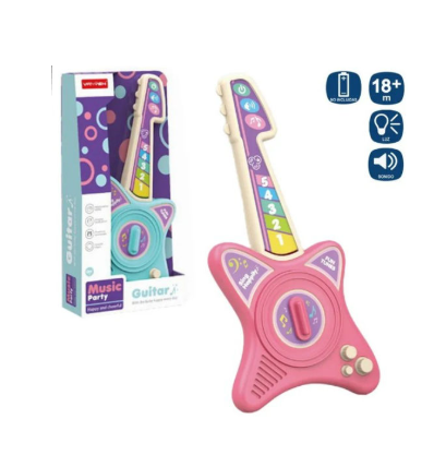 Pentru partenerii comerciali care urmăresc segmentul de jucării electronice atractive, acest produs este disponibil pentru achiziție en-gros în două variante de culori populare: roz vibrant și albastru electric. Chitara dispune de un panou de control interactiv care permite redarea de melodii vesele, ritmuri de tobe și acorduri de chitară electrică la o simplă apăsare de buton.