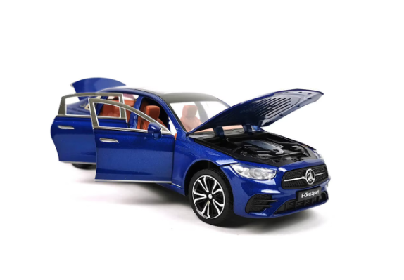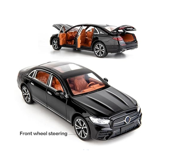 - Design Autentic: Emblemă și finisaje cromate care imită perfect modelul real Clasa E.