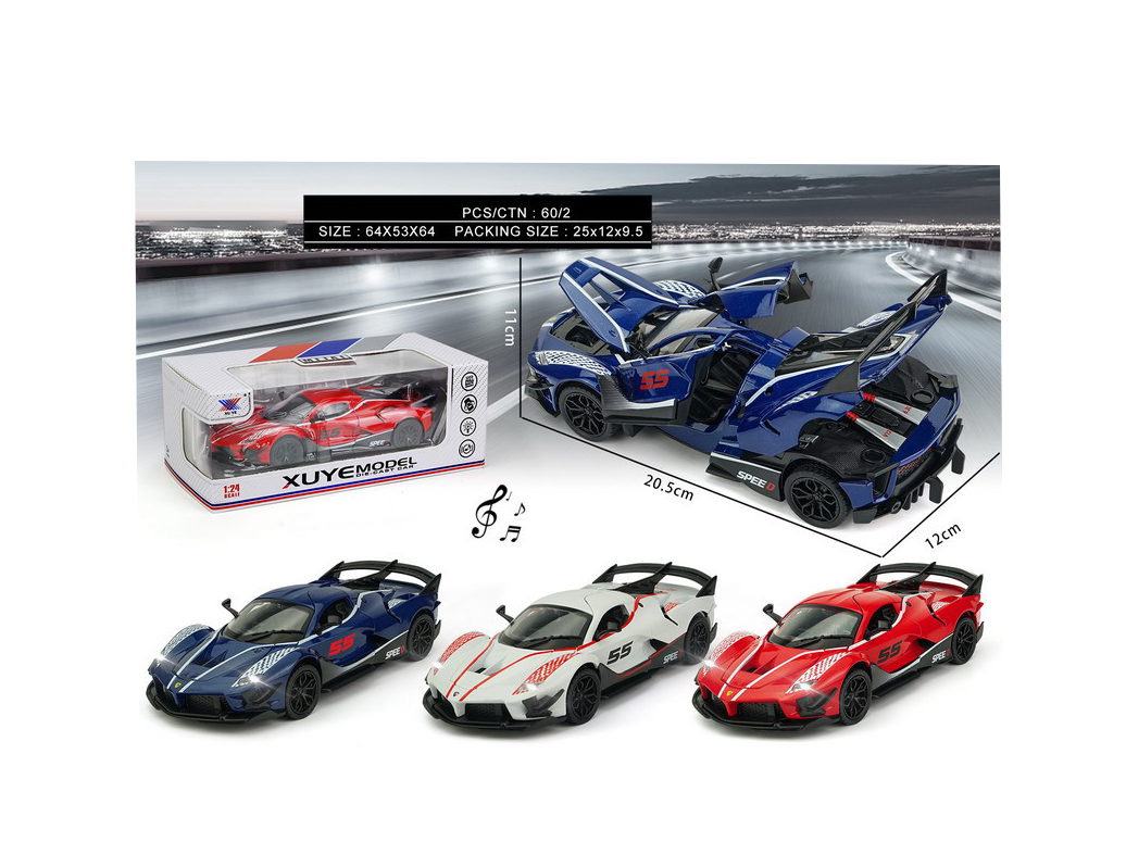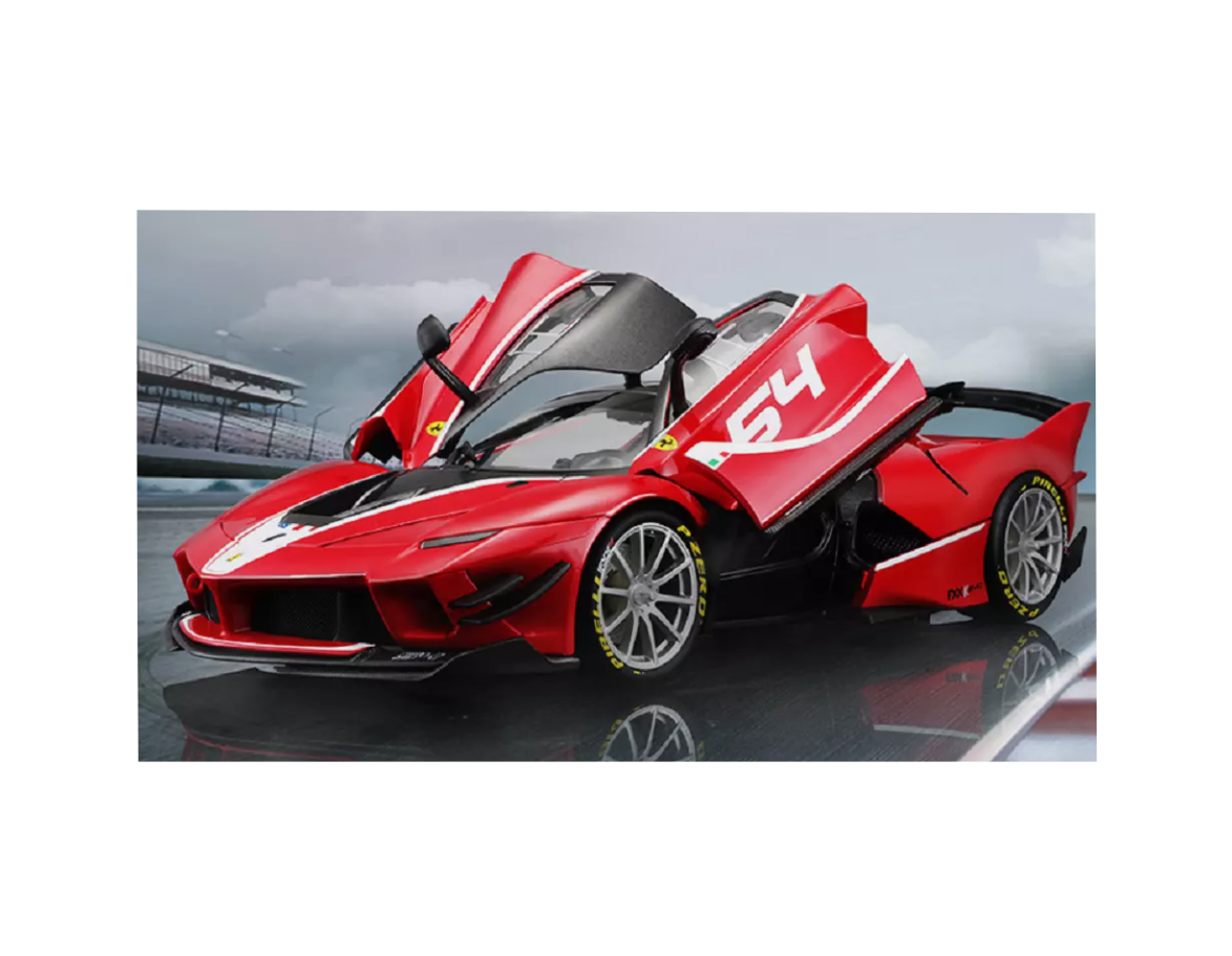 Pentru partenerii noștri en-gros, macheta Ferrari FXX-K este un produs de top care atrage atât copiii dornici de viteză, cât și colecționarii pasionați de motorsport. Modelul dispune de uși mobile (cu deschidere specifică) și capotă funcțională, permițând vizualizarea detaliată a habitaclului sportiv și a compartimentului motor. Mai mult, mașina este echipată cu un modul interactiv de sunet și lumini: la activare, farurile LED se aprind, iar sunetul motorului V12 este replicat pentru a oferi o experiență multisenzorială veritabilă.