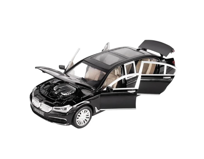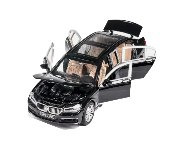 Pentru partenerii noștri en-gros, macheta 760Li reprezintă un articol de mare interes datorită funcționalităților sale extinse. Spre deosebire de machetele standard, acest model dispune de 6 deschideri funcționale: cele patru portiere, capota motorului și portbagajul, permițând explorarea unui interior minuțios finisat. Roțile față sunt pivotante, iar sistemul de suspensie activă adaugă un plus de realism mișcării, transformând macheta într-o piesă interactivă ce depășește nivelul unei simple decorațiuni.