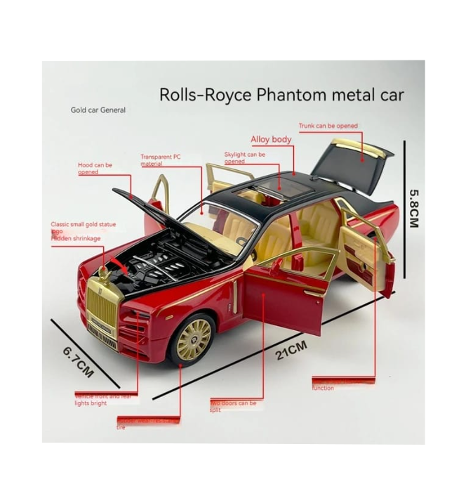 Pentru partenerii noștri en-gros, Rolls-Royce Phantom 1:24 este un produs de elită care atrage colecționarii rafinați și părinții care caută un cadou deosebit. Modelul impresionează prin cele 6 deschideri funcționale: cele patru portiere (inclusiv ușile spate cu deschidere inversă, tip "suicide doors"), capota motorului și portbagajul. Interiorul este o capodoperă în miniatură, replicând fidel finisajele de lux ale habitaclului real, vizibile clar datorită dimensiunilor generoase ale machetei.