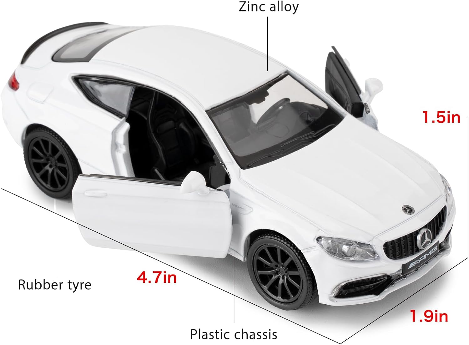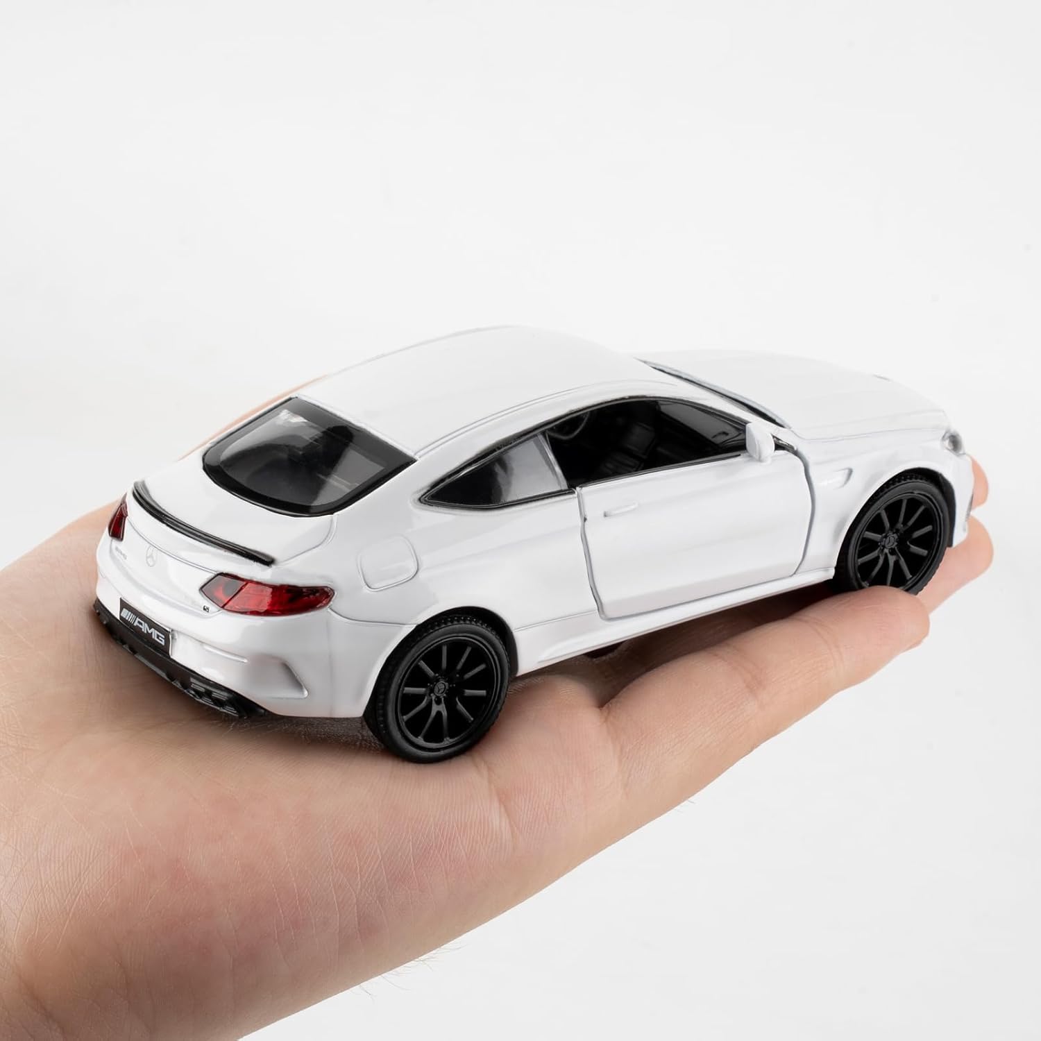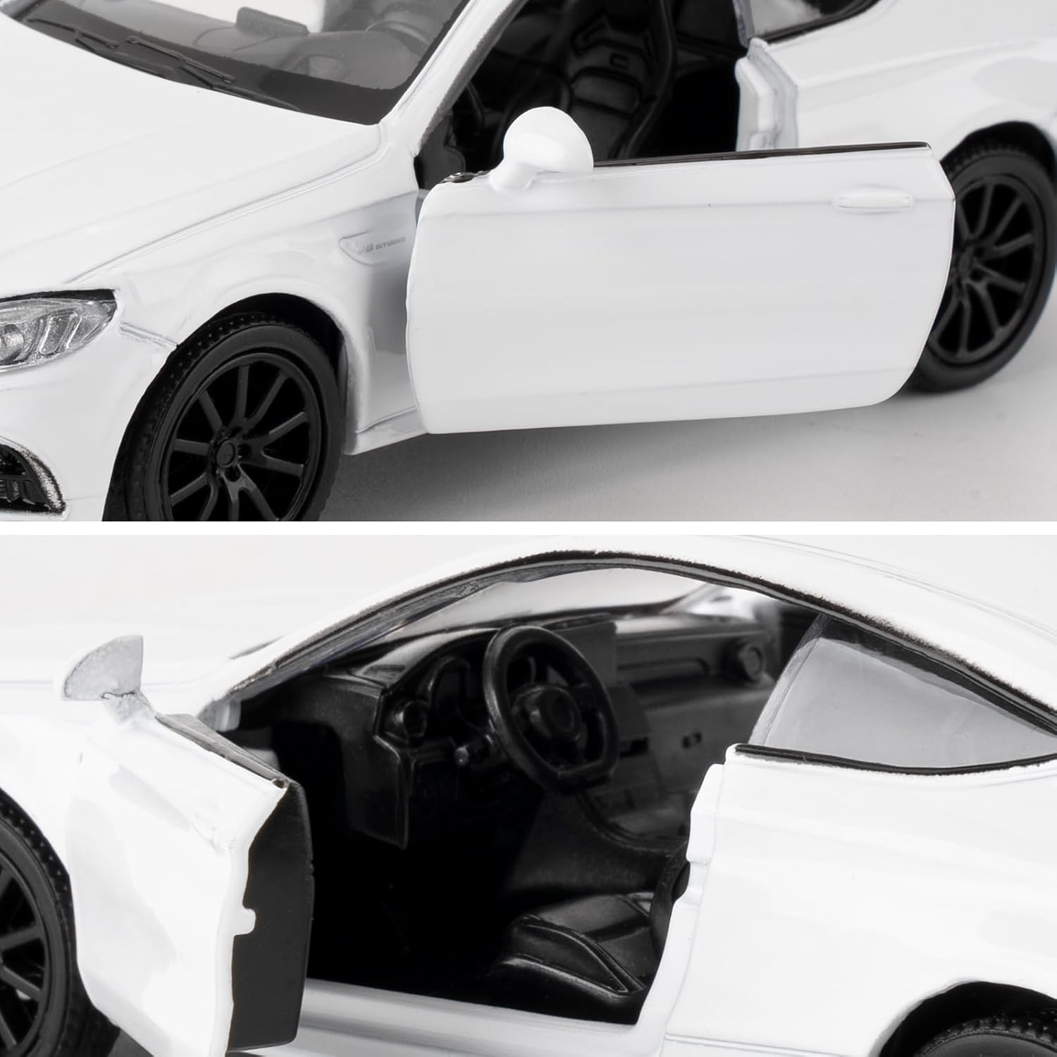 Macheta are o lungime de aproximativ 15 cm, fiind o dimensiune perfectă pentru a pune în evidență detaliile complexe. Analizând funcțiile sale, mașinuța se remarcă prin cele 4 portiere care se deschid, precum și capota și portbagajul mobile, permițând vizualizarea interiorului detaliat. Punctul forte al acestui model este modul interactiv: la apăsarea punții față sau la deschiderea ușilor, mașina activează farurile LED și emite sunete realiste de motor și alarmă. Dotată cu un motor de tip „Pull-Back” (tragi înapoi și îi dai drumul), mașina prinde viteză pe suprafețe plane, oferind o experiență de joacă dinamică. Anvelopele din cauciuc moale asigură o rulare silențioasă și protejează suprafețele delicate.