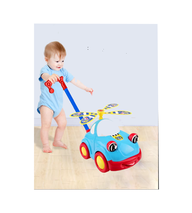 Încurajați primii pași ai micuțului dumneavoastră cu această mașină de împins cu elice, un vehicul interactiv care îmbină distracția cu dezvoltarea abilităților motorii. Concepută pentru a fi atât o jucărie de călărit, cât și un centru de activități, această mașinuță colorată captivează atenția prin elementul său central: o elice frontală care se rotește în siguranță, oferind copilului senzația că pilotează un vehicul special.