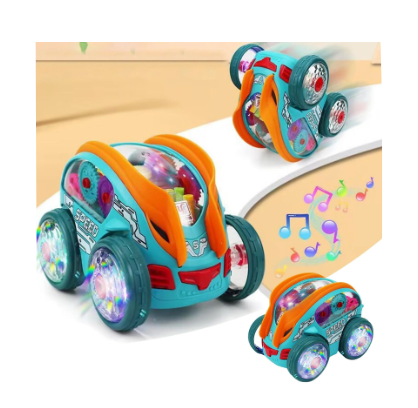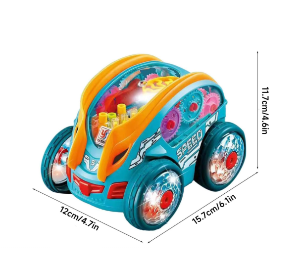 Mașina interactivă cu lumini și sunete este o jucărie dinamică și atractivă, concepută special pentru comercializare en-gros, potrivită pentru magazine de jucării, retaileri online și vânzători care caută produse cu impact vizual puternic. Din imaginile produsului se observă un design modern, realizat din plastic rezistent, cu carcasă parțial transparentă ce permite vizualizarea mecanismelor interne și a rotițelor colorate aflate în mișcare.