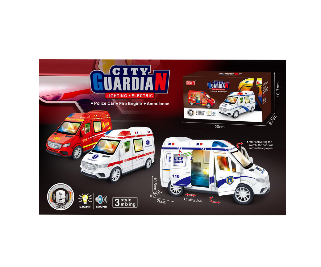 - Efecte Audio-Vizuale: Sirene de urgență autentice și lumini LED intermitente integrate.