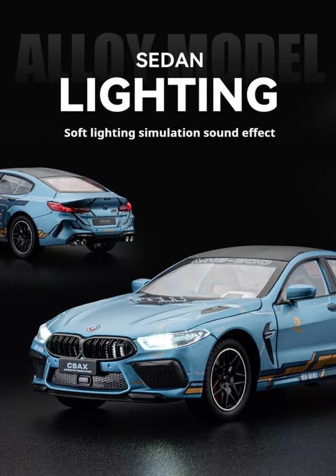 Echipată cu un mecanism de tip Pull-Back, mașina M8 este gata de cursă: trageți-o înapoi și eliberați-o pentru o plecare rapidă de pe loc. Roțile cu jante sport și anvelope din cauciuc asigură o aderență perfectă pe orice suprafață plană. Vopseaua lucioasă, detaliile aerodinamice și siglele fidele fac din această machetă un cadou memorabil pentru copiii pasionați de viteză și pentru colecționarii auto de orice vârstă.