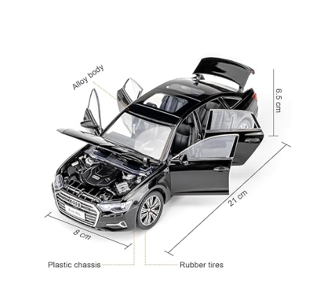 Prin combinația dintre caroseria metalică, funcțiile de lumini și sunete, roțile din cauciuc și designul premium Audi, mașina metalică Audi A6L negru 1:24 reprezintă o alegere sigură pentru vânzare en-gros, cu potențial ridicat de rotație și satisfacție a clienților finali.