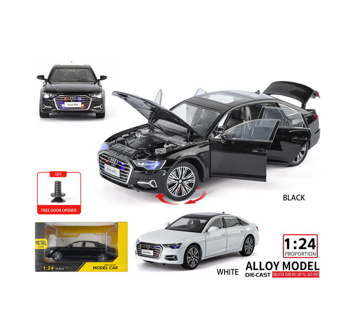 Mașina metalică Audi A6L negru 1:24 este un produs dedicat vânzării en-gros, conceput pentru comercianți care doresc să ofere clienților o jucărie premium, realistă și atractivă vizual. Acest model die-cast reproduce fidel designul elegant al sedanului Audi A6L, fiind realizat cu un nivel ridicat de detaliu, atât la exterior, cât și la interior, ceea ce îl transformă într-un produs foarte apreciat în categoria mașinuțelor metalice pentru copii.