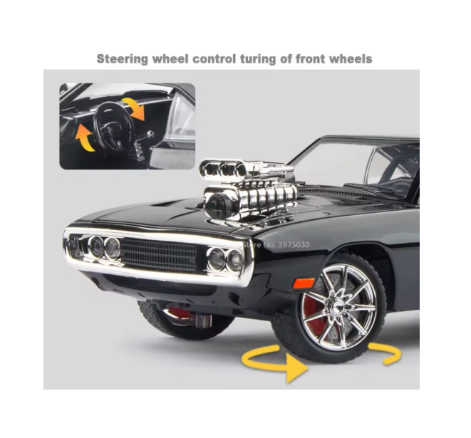 Pentru partenerii comerciali care caută produse premium pentru colecționari sau cadouri de impact, acest Dodge Charger este disponibil pentru achiziție en-gros. Mașina este dotată cu un motor simulat care iese prin capotă (supercharger), un simbol al puterii acestui model. Interactivitatea este la cel mai înalt nivel: se deschid ușile, capota și portbagajul, dezvăluind un interior reprodus meticulos.