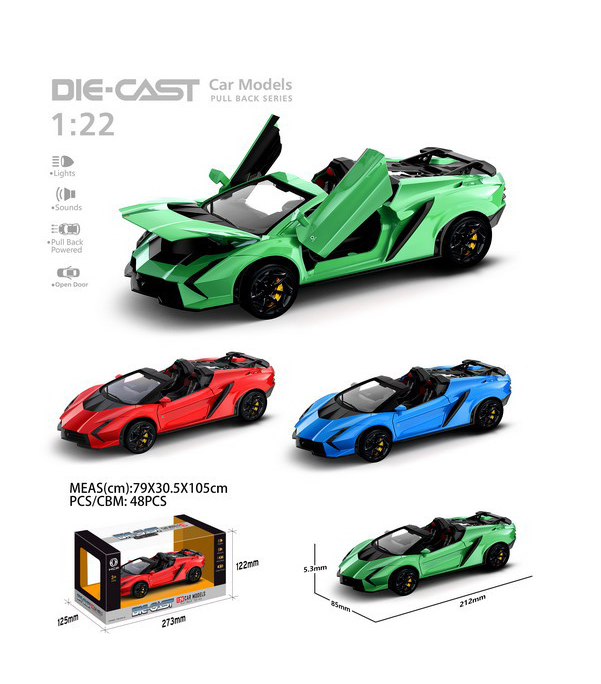 Cu o lungime de aproximativ 21 cm, mașina oferă o experiență de joacă complet interactivă. Analizând pozele produsului, se observă atenția la detalii: portierele se deschid pentru a dezvălui un interior sport detaliat, iar capota se ridică pentru a lăsa la vedere motorul simulat. Elementul surpriză este modulul electronic integrat: la apăsarea punții față sau la deschiderea ușilor, mașina activează sunete realiste de accelerare și lumini LED strălucitoare în faruri și stopuri. Echipată cu un mecanism puternic de tip „pull-back” și anvelope din cauciuc moale, această mașină este gata pentru curse palpitante prin casă sau pentru a fi piesa centrală a unei vitrine de colecție.