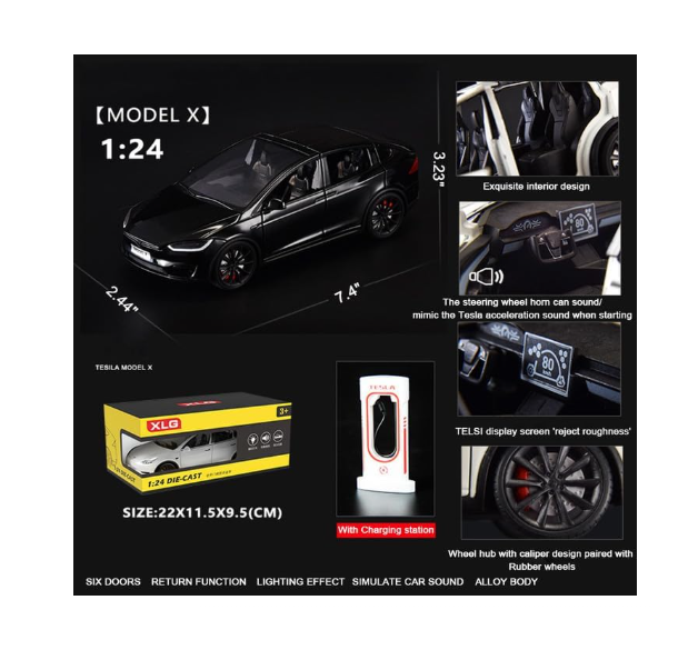 Experimentați eleganța și tehnologia de vârf cu această mașină metalică tip Tesla Model X, o replică fidelă la scara 1:24 a celebrului SUV electric. Această machetă die-cast este concepută pentru a surprinde esența designului modern, îmbinând durabilitatea metalului cu funcții interactive avansate care vor încânta atât micii șoferi, cât și colecționarii rafinați. Atenția la detalii transformă acest vehicul într-o piesă de colecție remarcabilă, perfectă pentru orice pasionat de inovație auto.