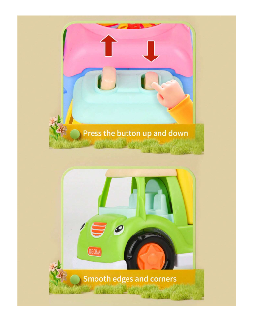 Împrospătați atmosfera de joacă cu o jucărie cu totul specială: mașinuța interactivă Flying Disc Ice Cream. Aceasta nu este doar o simplă mașină de înghețată, ci un centru de divertisment mobil care combină muzica veselă, luminile multicolore și o funcție surprinzătoare de lansare a discurilor. Designul său inspirat de rulotele clasice de înghețată, decorat cu elemente vesele și culori pastelate, atrage imediat atenția celor mici, transformând camera de joacă într-o scenă plină de dinamism.