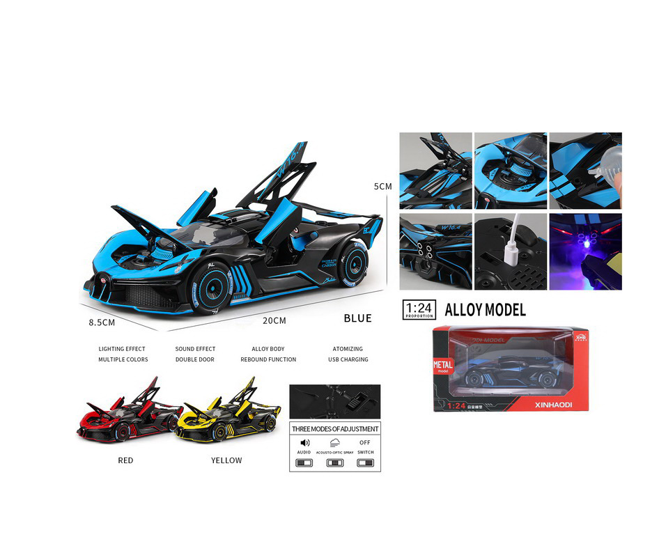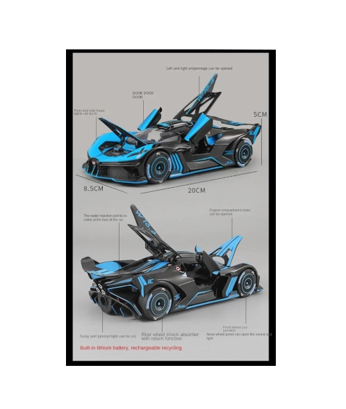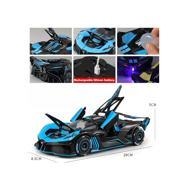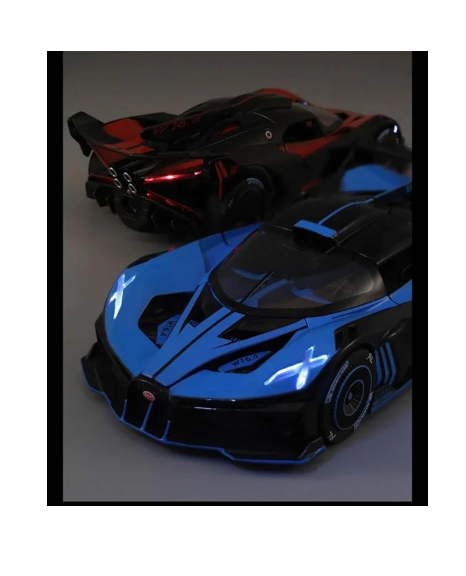 Mașinuța metalică Bugatti Bolide 1:24 este un produs spectaculos, conceput pentru comercializare en-gros, destinat magazinelor de jucării, retailerilor specializați, vânzătorilor online și comercianților care doresc să ofere un articol premium, cu impact vizual puternic și funcționalități moderne. Inspirată din celebrul model Bugatti Bolide, această mașinuță reproduce fidel designul agresiv și futurist al supercarului, fiind realizată din aliaj metalic rezistent, cu finisaje atent lucrate și detalii realiste.