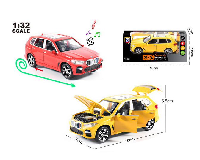 Descoperiți perfecțiunea detaliilor cu această mașinuță metalică tip X5 M, o replică impresionantă la scara 1:32 care îmbină durabilitatea materialelor premium cu funcționalitatea interactivă. Realizată prin tehnologia die-cast, caroseria din metal conferă vehiculului o greutate realistă și o rezistență sporită, fiind ideală atât pentru micii pasionați de automobile, cât și pentru colecționarii rafinați. Designul sportiv, specific gamei M, este evidențiat prin linii agresive și finisaje lucioase de înaltă calitate.