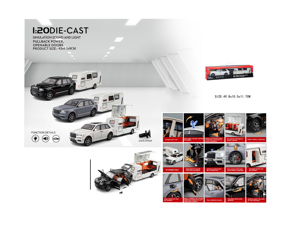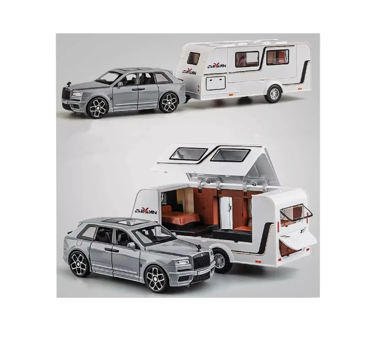 - Set Complet: Include SUV-ul Rolls-Royce Cullinan și o rulotă de lux asortată.