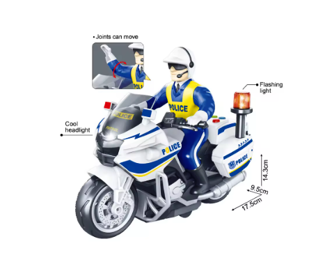 Experiența este completată de sunetele autentice de sirenă, motor turat și mesaje de intervenție, captivând imaginația copiilor și încurajând jocurile de rol. Realizată din plastic ABS de înaltă rezistență, motocicleta este durabilă și sigură pentru copii, având margini rotunjite și finisaje de calitate. Este alegerea ideală pentru micii eroi care vor să mențină ordinea în orașul lor de jucărie.