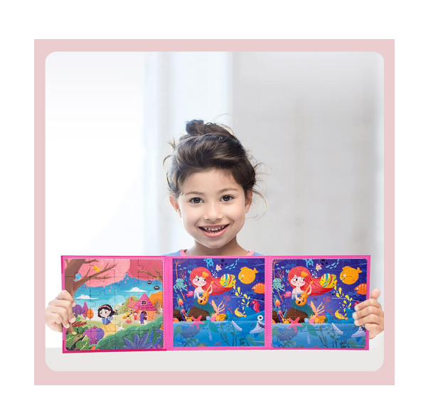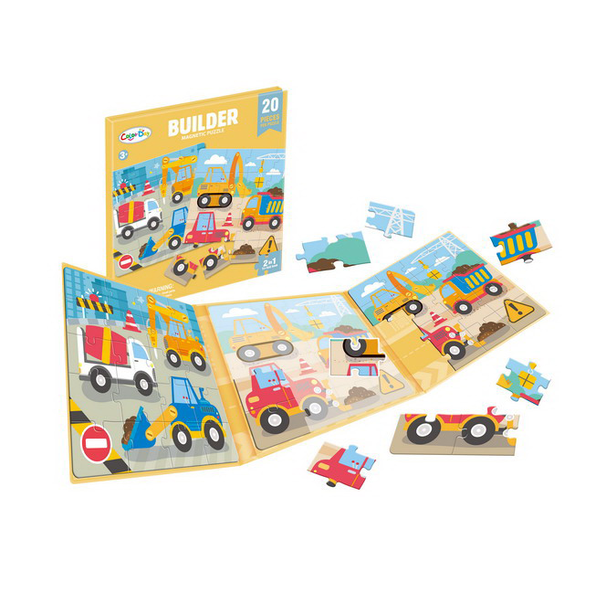 Transformați timpul de joacă într-o experiență de învățare captivantă cu acest puzzle magnetic tip carte, soluția ideală pentru divertismentul celor mici, fie acasă, fie în călătorii. Conceput sub forma unei cărți elegante și compacte, acest joc deschide o lume a creativității unde piesele magnetice pot fi asamblate direct pe suprafața interioară a coperții. Designul inteligent permite depozitarea tuturor pieselor în interiorul „cărții”, eliminând riscul pierderii acestora și facilitând transportul.