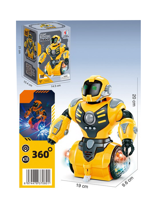 Aduceți distracția viitorului în casa dumneavoastră cu acest robot electric interactiv, o jucărie dinamică ce va captiva instantaneu atenția celor mici. Într-o nuanță de galben strălucitor, acest robot nu este doar un simplu obiect decorativ, ci un adevărat partener de dans. Datorită bazei sale speciale, robotul execută o rotație completă de 360°, oferind un spectacol de mișcare fluidă și antrenantă care încurajează copiii să fie activi și să își dezvolte coordonarea.