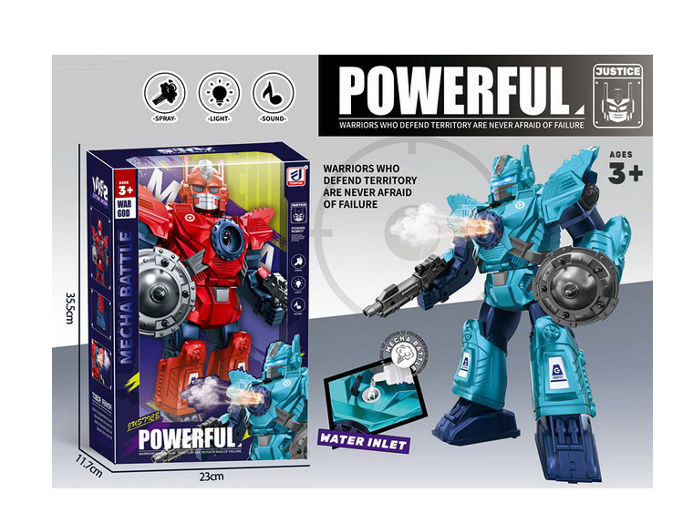 Efectele sonore și muzica integrată sunt sincronizate cu mișcările robotului, încurajând jocul activ și dezvoltarea imaginației. Indiferent dacă robotul patrulează prin cameră sau își etalează puterile prin nori de vapori iluminați, acesta oferă o experiență de neuitat. Ambalajul generos, cu grafică modernă, subliniază funcția specială de pulverizare, făcându-l cadoul perfect pentru aniversări sau sărbători.