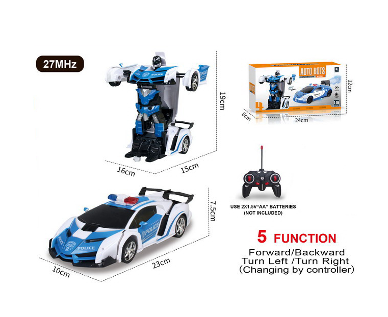 Pentru partenerii noștri en-gros, acest produs este un magnet pentru vânzări datorită funcției de transformare automată. Robotul este echipat cu un sistem de iluminare LED multicolor și un modul sonor care emite sirene de poliție și sunete specifice de luptă, oferind o experiență de joc imersivă. Telecomanda wireless permite controlul deplin asupra mișcărilor (înainte, înapoi, viraje la 360 de grade), atât în modul mașină, cât și în modul robot, asigurând o manevrabilitate excelentă pe suprafețe plane.