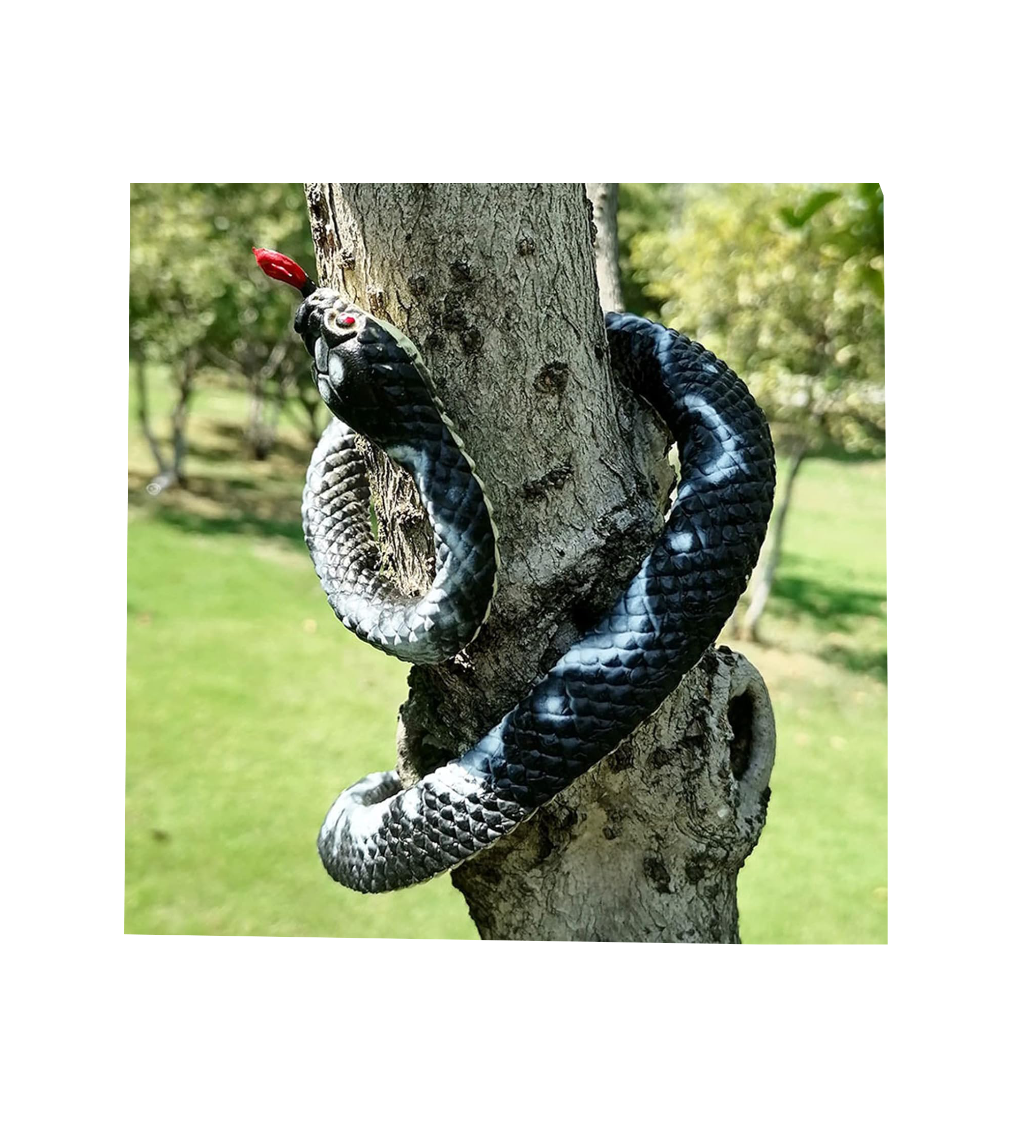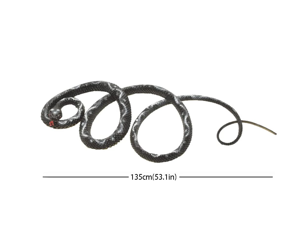 Adăugați un element de surpriză sau o soluție practică de protecție cu acest șarpe fals din cauciuc, creat să imite fidel aspectul unei reptile reale. Cu o lungime impresionantă de 100 cm, acest model este realizat dintr-un cauciuc moale și flexibil, care îi permite să fie așezat în diverse poziții sinuoase pe sol, pe crengile copacilor sau ascuns printre obiecte. Culoarea neagră mată și textura care reproduce fidel solzii îi conferă un realism surprinzător, fiind greu de deosebit de un șarpe adevărat la o primă vedere.