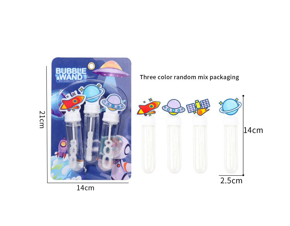 Transformați orice activitate în aer liber într-o aventură galactică cu acest Set de 3 tuburi cu soluție pentru baloane de săpun. Fiecare tub este echipat cu o baghetă specială pentru suflat și este decorat cu figurine atractive inspirate din universul spațial, precum rachete, nave UFO și astronauți. Acest set este conceput pentru a oferi ore întregi de divertisment creativ, stimulând coordonarea și mișcarea celor mici în timp ce aleargă după bulele strălucitoare.