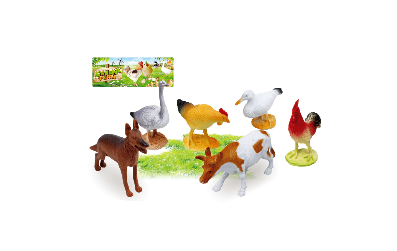 Figurinele au dimensiuni cuprinse între 10 cm și 14 cm lungime, fiind ideale pentru a fi manipulate de mâinile mici ale copiilor. Setul include cele mai îndrăgite animale din gospodărie: vaca, calul, porcul, oaia, capra și măgărușul. Realizate dintr-un material plastic dens, durabil și sigur (fără substanțe toxice), aceste figurine rezistă cu succes la ore întregi de joacă activă. Acest set este instrumentul perfect pentru dezvoltarea vocabularului, învățarea speciilor și stimularea jocurilor de rol creative, ajutându-i pe copii să își construiască propria fermă de vis.