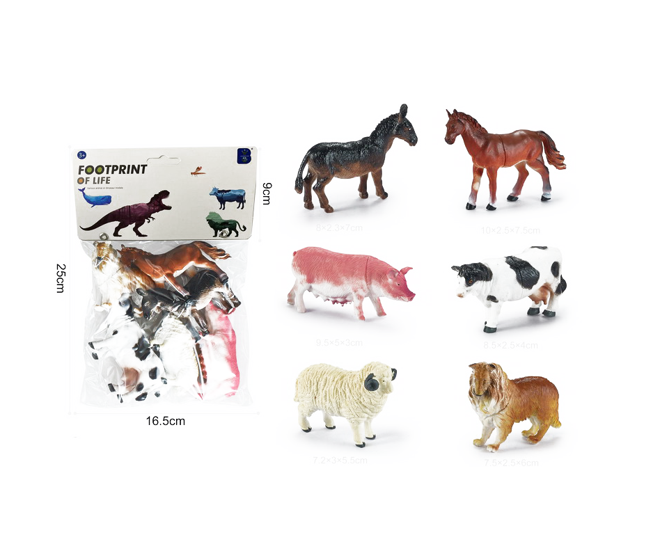 Figurinele au dimensiuni cuprinse între 10 cm și 12 cm, fiind ușor de manevrat și potrivite pentru mâinile mici ale copiilor. Analizând conținutul, setul include cele mai îndrăgite animale din curte: calul grațios, vaca bălțată, oaia pufoasă, porcușorul și alte figurine reprezentative. Fabricate dintr-un material plastic dens, durabil și non-toxic, aceste animale sunt rezistente la joacă intensă, atât în interior, cât și în exterior (în nisip sau iarbă). Este setul ideal pentru a completa o fermă de jucărie sau pentru a fi utilizat în proiecte școlare despre natură și agricultură.