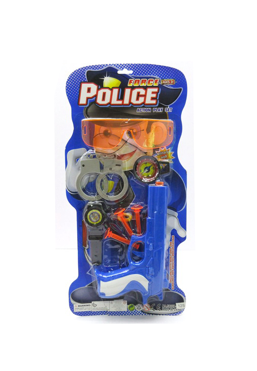 Pistolul de jucărie are o lungime de aproximativ 20 cm, fiind ergonomic și ușor de manevrat chiar și de către copiii de vârstă preșcolară. Analizând funcționalitatea sa, pistolul dispune de un mecanism de declanșare care produce un sunet specific de „clic”, oferind o experiență auditivă fără a fi necesară utilizarea bateriilor. Setul este completat de o pereche de cătușe metalice sau din plastic dur (în funcție de variantă), dotate cu un mecanism de siguranță pentru deschidere rapidă și o pereche de chei. Insigna de polițist inclusă poate fi atașată la haine, oferindu-i micuțului autoritatea necesară pentru a restabili liniștea în camera de joacă. Fabricat din materiale non-toxice, setul este conceput pentru a rezista la numeroase „confruntări” între polițiști și infractori.