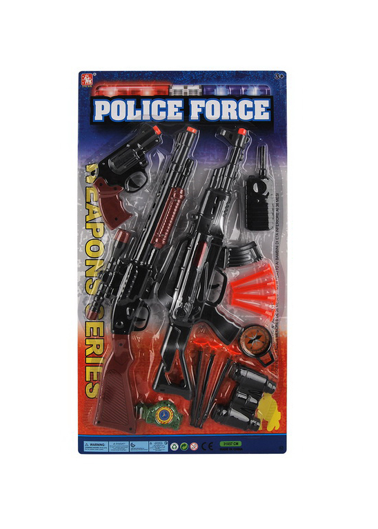 Mențineți ordinea și siguranța în orașul imaginar cu acest set de puști Police Force, un pachet complet de echipament tactic pentru micii ofițeri de poliție. Acest set de joacă este conceput pentru a oferi o experiență de acțiune realistă, fiind ideal pentru jocurile de rol în care dreptatea trebuie să triumfe. Designul inspirat din forțele de intervenție speciale și detaliile mecanice fac din acest set alegerea preferată a copiilor pasionați de aventuri polițiste.