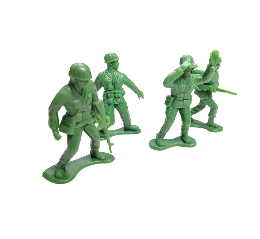 Figurinele au o înălțime medie de aproximativ 5 cm, dimensiunea ideală pentru a fi transportate în rucsac sau depozitate în cutii de jucării. Realizați dintr-un material plastic durabil, de culoare verde masliniu, soldații sunt concepuți să reziste la utilizări intense, atât la interior, cât și la exterior (în nisip sau iarbă). Fiecare figurină este prevăzută cu o bază stabilă, prevenind răsturnarea în timpul „confruntărilor”. Acest set nu doar că stimulează imaginația, dar ajută și la dezvoltarea gândirii strategice și a răbdării, fiind o alegere excelentă pentru colecționari și copii deopotrivă.