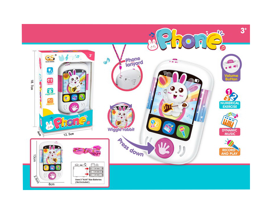 Telefonul interactiv de jucărie iepuraș cu muzică, lumini și funcție de înregistrare este conceput pentru a oferi copiilor o experiență de joacă educativă, distractivă și sigură. Cu un design prietenos în formă de iepuraș și funcții interactive multiple, această jucărie este ideală pentru comercializare en-gros, fiind potrivită pentru magazine de jucării, retaileri specializați și comercianți care doresc să ofere produse atractive și ușor de vândut.
