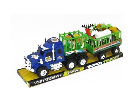 Setul include figurine animale sălbatice, atent colorate, precum cerb, tigru, zebra sau alte animale exotice, alături de accesorii decorative sub formă de palmieri. Aceste elemente creează o tematică de safari, stimulând imaginația și jocul de rol. Figurinele pot fi utilizate atât în remorcă, cât și separat, extinzând varietatea scenariilor de joacă.