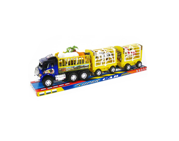 TIR-ul de jucărie pentru transport animale cu două remorci tip cușcă este un set spectaculos, conceput pentru a reproduce într-un mod atractiv vehiculele utilizate pentru transportul animalelor. Produsul este ideal pentru comercializare en-gros, fiind potrivit pentru magazine de jucării, retaileri specializați și comercianți care doresc să ofere copiilor jucării tematice, rezistente și ușor de vândut.
