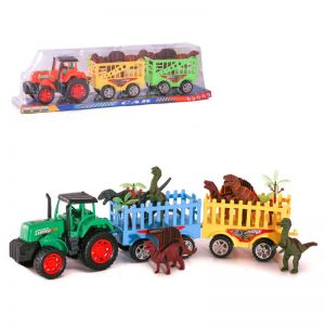 Un element care diferențiază acest produs este prezența celor 2 figurine dinozaur, realizate din plastic și atent colorate. Dinozaurii pot fi transportați în remorci sau folosiți separat, stimulând jocul de rol și creativitatea copilului. Combinația dintre tractor, remorci și dinozauri creează un set complet, care oferă multiple posibilități de joacă.