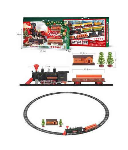Setul de tren cu locomotivă, vagon cu bușteni, gară și brăduți este o jucărie feroviară completă, creată pentru copiii pasionați de trenuri, transport și jocuri de rol inspirate din viața reală. Acest produs este disponibil en-gros și reprezintă o alegere potrivită pentru magazine de jucării, distribuitori și comercianți care doresc să includă în ofertă un set clasic, ușor de recunoscut și cu valoare educativă.