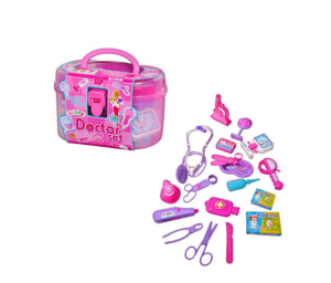 Trusa include o varietate de instrumente medicale de jucărie, inspirate din echipamente reale, precum stetoscop, seringă, foarfecă, termometru, flacon pentru medicamente, carduri și alte accesorii specifice jocului de rol. Aceste elemente sunt realizate din plastic rezistent, cu margini rotunjite, adaptate utilizării de către copii.