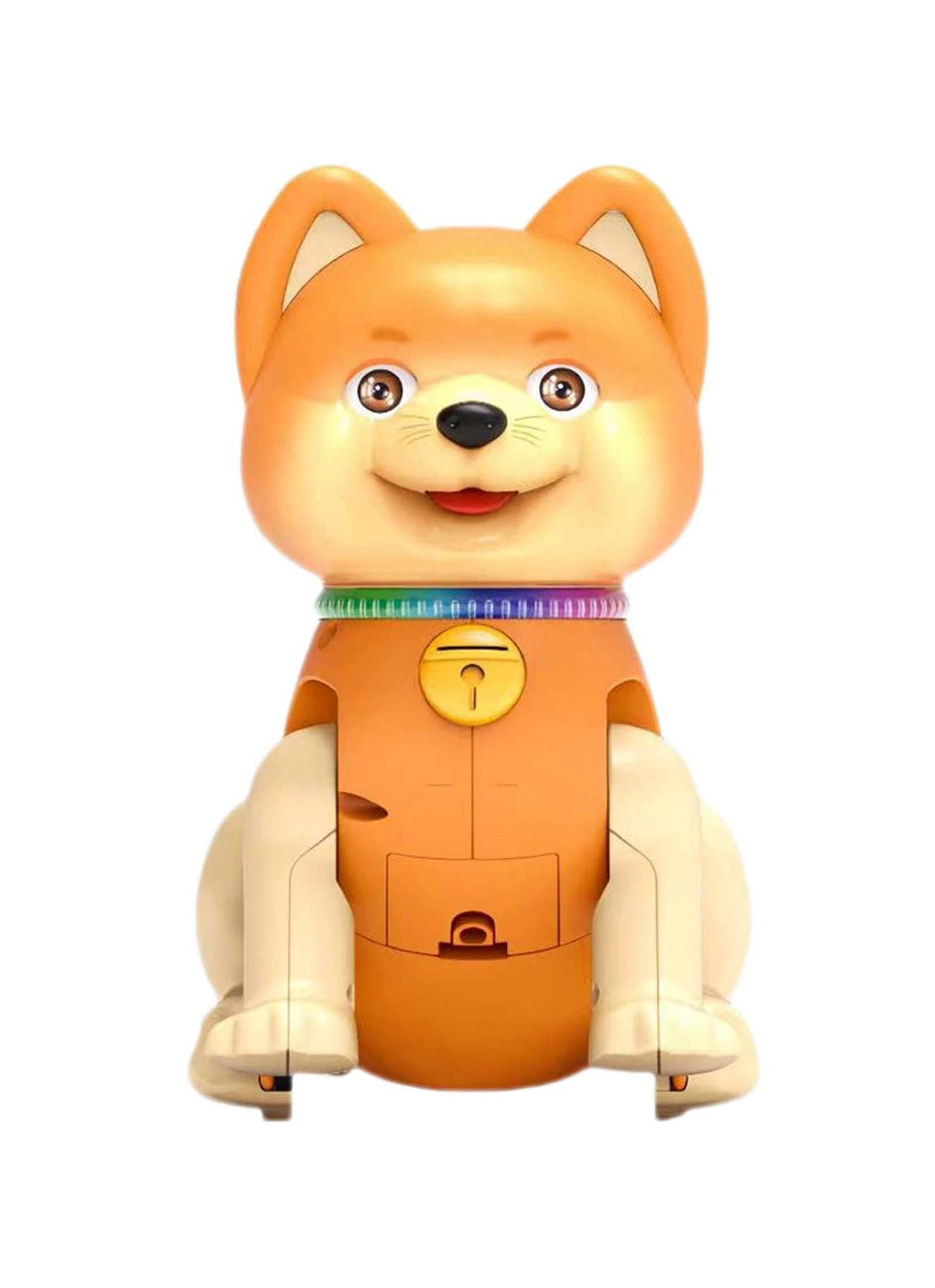 Cățelușul are un aspect vesel și expresiv, cu ochi mari și zâmbet prietenos, ceea ce îl face imediat atractiv pentru cei mici. Culorile calde și finisajele atent realizate contribuie la o experiență vizuală plăcută, stimulând curiozitatea copilului. Prin apăsarea butonului integrat, jucăria emite sunete muzicale și efecte luminoase, transformând joaca într-o activitate captivantă care menține interesul copilului pentru perioade mai lungi de timp.