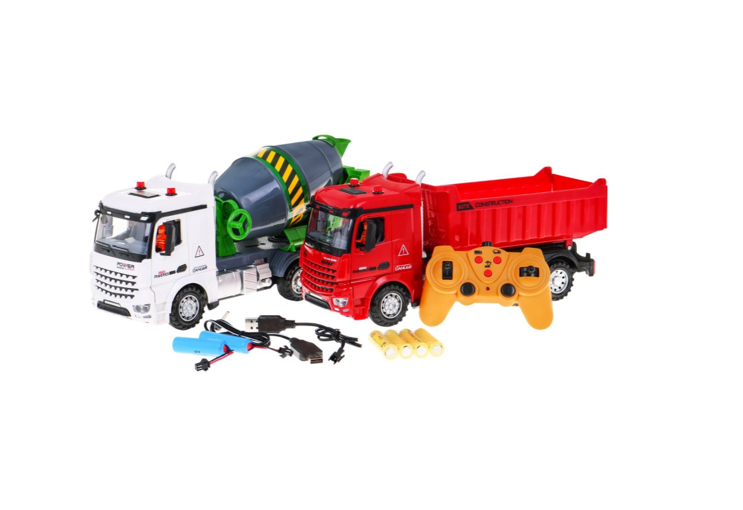 Piesa centrală, macaraua, are o înălțime impresionantă de aproximativ 55 cm și este dotată cu o telecomandă ce permite rotirea brațului și ridicarea sau coborârea încărcăturii. Betoniera dispune de un tambur rotativ manual, iar camionul dumper are o benă basculabilă, ideală pentru transportul materialelor de construcții de jucărie. Utilajele au o lungime medie de aproximativ 20 cm, fiind fabricate dintr-un plastic ABS durabil, capabil să reziste la utilizări intense. Setul include, de asemenea, accesorii precum balize și semne de circulație, oferind un context complet pentru misiunile de construcție.